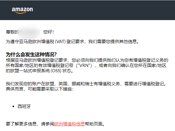 近期,亚马逊西班牙站点向卖家发出重要通知,要求所有在西班牙有增值税登记义务的卖家必须在60天内提交有效的西班牙欧盟税号(ROI),或确认其欧盟一站式申报系统(OSS)状态。