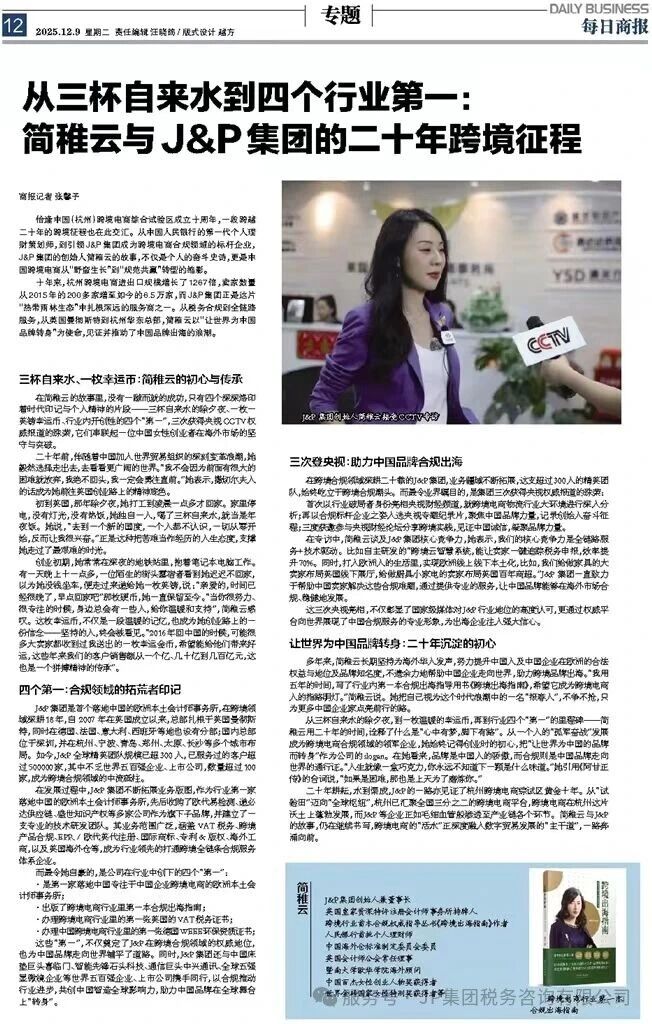 三次登陆央视、五度荣登权威媒体!J&P简稚云引领中国品牌出海新征程