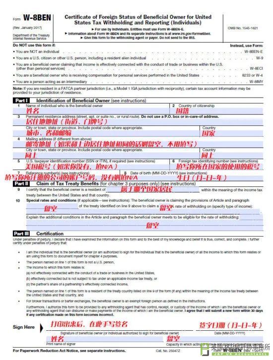 W-8BEN 表格下载地址:https://www.irs.gov/pub/irs-pdf/fw8ben.pdf