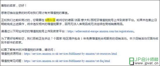亚马逊上线增值税服务,大规模发送邮件提醒注册VAT